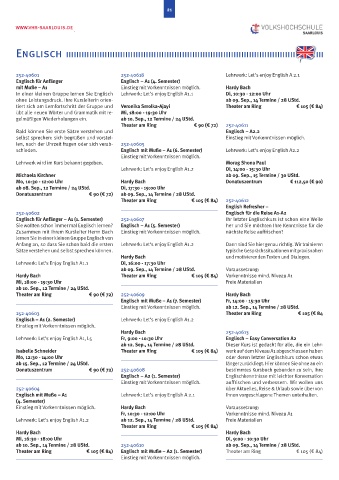Theater am Ring € 105 (€ 84) Englisch mit Muße – A2 (1. Semester) Theater am Ring € 105 (€ 84)